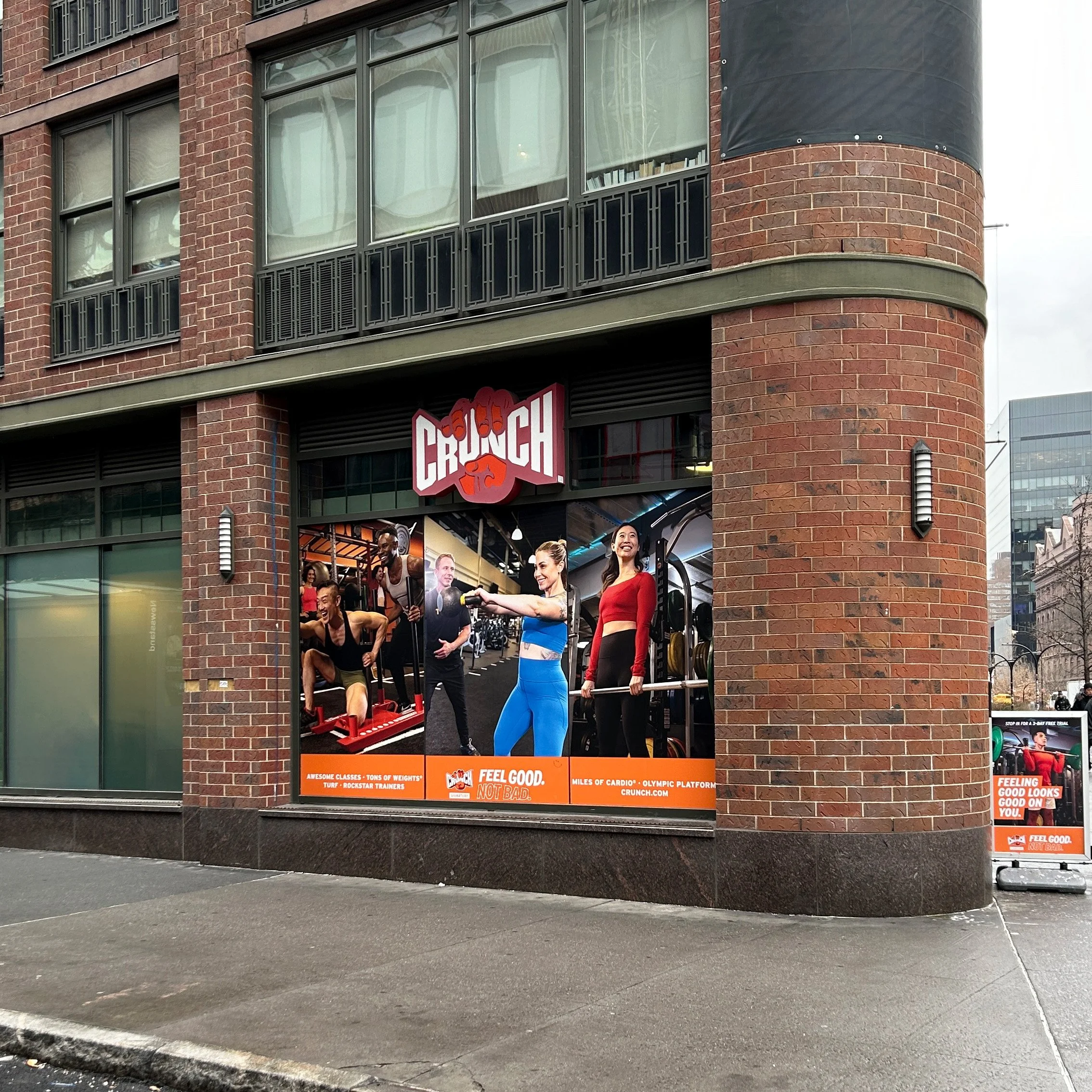 Feel Good Graphics. Clockwise from top left: Crunch Bowery, Crunch 34th St, Crunch Chelsea, and Crunch FiDi.