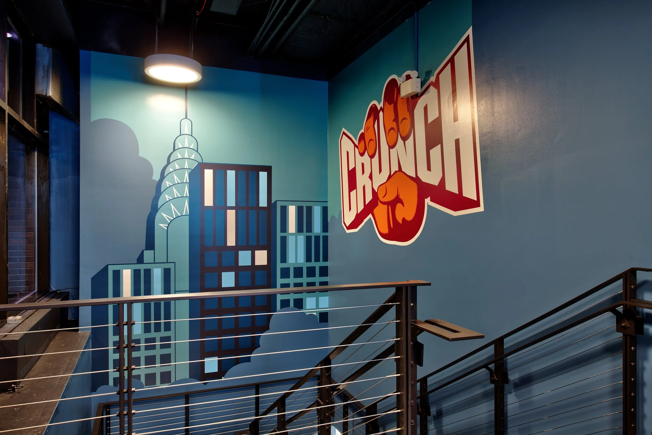 Following Crunch FiDi’s 2024 renovations, a 40-foot blank wall presented the perfect opportunity for a statement mural. Partnering with Crunch FiDi Operations, Marketing, and the Creative team, I designed and executed a large-scale mural showcasing the New York City skyline. The piece highlights iconic downtown landmarks—including the Statue of Liberty, Isamu Noguchi’s Red Cube, One World Trade Center, and the Brooklyn Bridge—while weaving in fitness-inspired elements to celebrate both the city and Crunch’s brand identity.