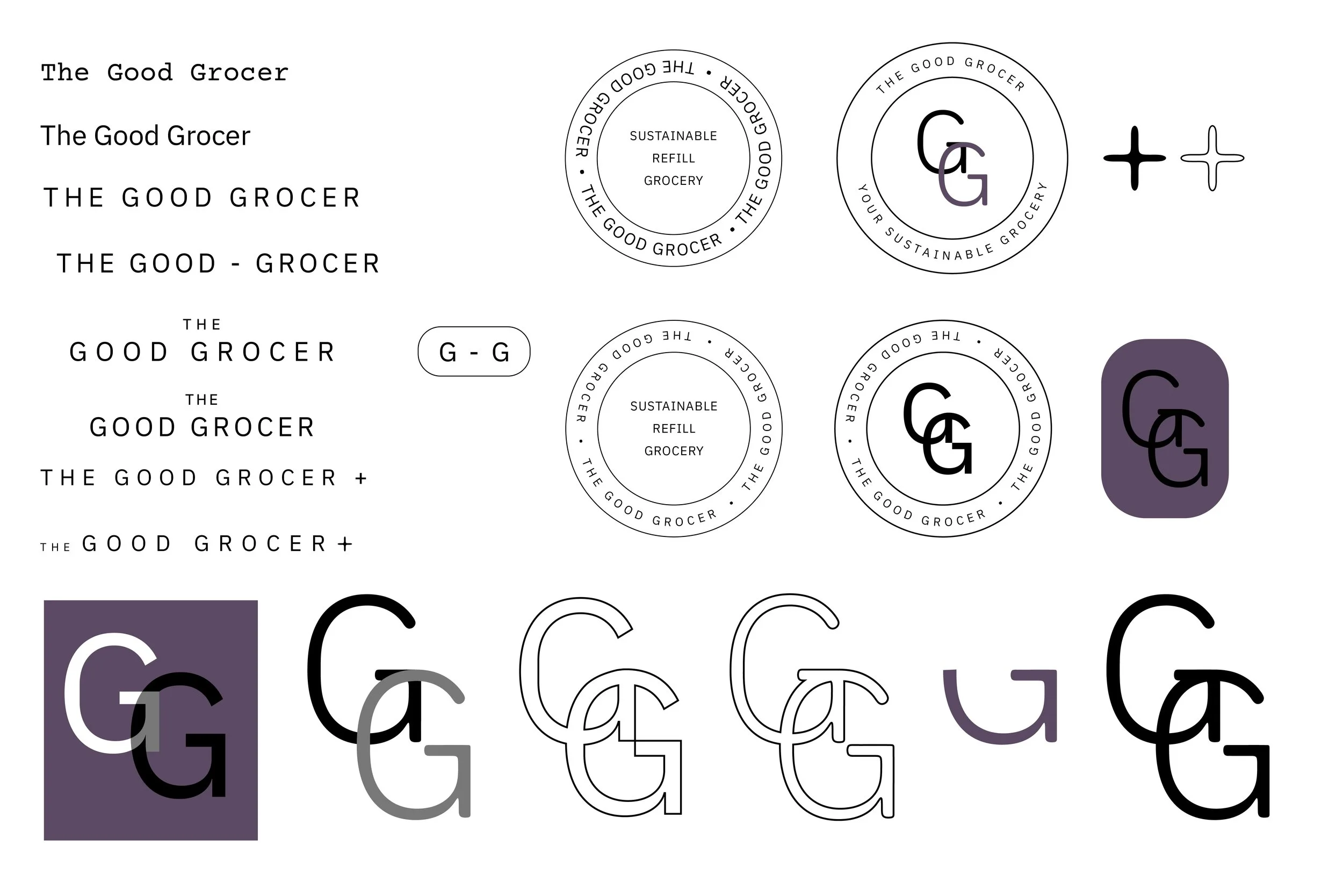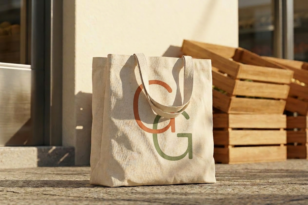 The Good Grocer logo system explores how simplicity can communicate care. Built from IBM Plex Sans as a base and manually refined, the interlocking “G” wordmark was developed as a symbol of connection and repetition — reflecting the brand’s belief that sustainability lives in everyday routines rather than grand gestures. The final identity embraces restraint, using open forms and minimal intervention to feel familiar, grounded, and quietly confident.